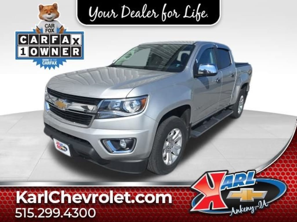 Recent Arrival! Clean CARFAX. Silver Ice Metallic 2017 Chevrolet Colorado LT 4WD CREW CAB 128.3 LT V6 4WD. 17/24 City/Highway MPG 8-Speed Automatic 4WDAt Karl Chevrolet we want to help you find the best new or used car in Ankeny that suits your needs. Check out the 2017 Chevrolet Colorado For Sale in Ankeny, IA. When you buy a new car at Karl Chevrolet you know you're finding a vehicle you can rely on. We have a great selection of Platinum Quality Pre-Owned Vehicles. We also pride ourselves in creating a friendly atmosphere and reliable new car dealership that you can trust. Call us with any questions about our 2017 Chevrolet Colorado and our experts will be glad to help you! (515) 299-4300. *Equipment and options are generated by a 3rd party vendor, exact vehicle options may vary. Please see a salesperson for complete details and vehicle information.