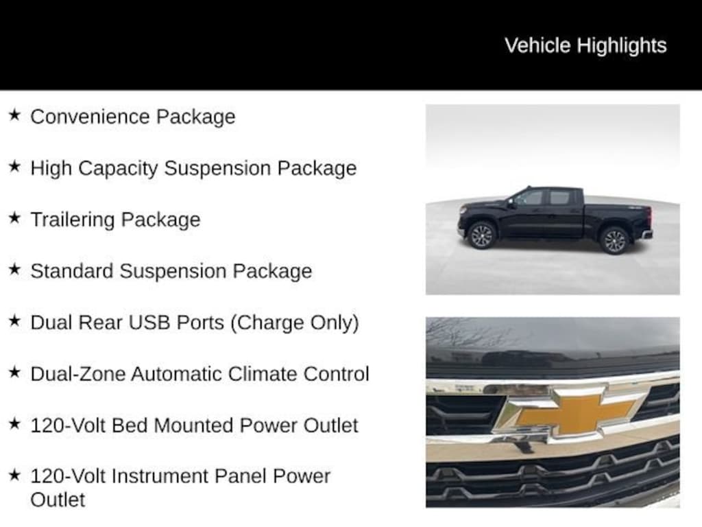 Certification Program Details: Karl Chevrolet Stuart, CarBravo Certified Dealer! Every CarBravo Certified vehicle includes: Comprehensive 126-Point Inspection Professionally inspected by factory-trained technicians to meet strict mechanical, safety, and cosmetic standards. 12-Month / 12,000-Mile Bumper-to-Bumper Limited Warranty Enjoy added peace of mind with extensive coverage from the day you drive off the lot. 24/7 Roadside Assistance & Courtesy Transportation Flat tire? Dead battery? Need a tow? You're covered anywhere, anytime throughout the warranty period. Vehicle History & Title Guarantee Clean title, completed safety recalls, and a full CARFAX® or AutoCheck® report provided for complete transparency. 10-Day / 500-Mile Exchange Promise If you don't absolutely love it, bring it back and exchange it no hassle, no stress. Experience peace of mind and premium protection exclusively from Karl Chevrolet Stuart!!- Wheels: 20 x 9 Painted Aluminum- Convenience Package- High Capacity Suspension Package- Standard Suspension Package- Trailering Package- Dual Rear USB Ports (Charge Only)- Dual-Zone Automatic Climate Control- 120-Volt Bed Mounted Power Outlet- 120-Volt Instrument Panel Power Outlet- Manual Tilt/Telescoping Steering Column- Keyless Open & Start- Heated Steering Wheel- Leather Wrapped Steering Wheel- 10-Way Power Driver Seat w/Lumbar- Heated Driver & Front Outboard Passenger Seats- Hitch GuidanceThis 2022 Chevrolet Silverado 1500 LT is a powerful and capable full-size pickup that's ready to handle all your towing, hauling, and off-road adventures. Equipped with a 2.7L Turbo engine and 4-wheel drive, this Silverado delivers impressive performance and capability. The exterior features a sleek black paint job and stylish 20-inch painted aluminum wheels, giving it a bold and rugged appearance.Inside, the Silverado LT offers a wealth of premium features and conveniences to make every drive more comfortable and enjoyable. Dual-zone automatic climate control, a heated steering wheel, and heated front seats provide year-round comfort, while the 10-way power driver's seat with lumbar support ensures a personalized fit. The Chevrolet Infotainment 3 Premium system with wireless Apple CarPlay and Android Auto integration keeps you connected and entertained on the go.With its impressive towing capacity, advanced safety technologies, and premium amenities, this 2022 Chevrolet Silverado 1500 LT is the perfect choice for those who demand a versatile and well-equipped full-size pickup. Experience the power, capability, and comfort of this exceptional vehicle for yourself. Schedule a test drive today and let us show you why the Silverado LT is the perfect fit for your lifestyle.This 2022 Chevrolet Silverado 1500 LT is a CarBravo Certified vehicle, meaning it has undergone a comprehensive 126-point inspection by our factory-trained technicians. You can drive with confidence knowing that this truck has met our strict mechanical, safety, and cosmetic standards. Enjoy the added peace of mind of a 12-month/12,000-mile bumper-to-bumper limited warranty, 24/7 roadside assistance, and a 10-day/500-mile exchange promise. Experience the difference of owning a premium pre-owned vehicle from Karl Chevrolet Stuart.At Karl Chevrolet Stuart we want to help you find the best new or used car in Stuart that suits your needs. When you buy a new car at Karl Chevrolet Stuart you know you're finding a vehicle you can rely on. We have a great selection of CarBravo Quality Pre-Owned Vehicles. We also pride ourselves in creating a friendly atmosphere and a reliable Dealership that you can trust. Call us and our experts will be glad to help you! (515) 523-1201. *Equipment and options are generated by a 3rd party vendor, exact vehicle options may vary. Please see a salesperson for complete details and vehicle information.