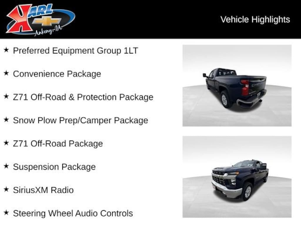 Recent Arrival! CARFAX One Owner, Local Trade & Sold New at Karls! Equipped With Running Boards & Tonneau Cover! Certified. Northsky Blue Metallic 2022 Chevrolet Silverado 2500HD LT 4WD DOUBLE CAB 149 LT 6.6L V8 6-Speed Automatic, 4WD, Black Cloth, 10-Way Power Driver Seat Adjuster w/Lumbar, 12-Volt Rear Auxiliary Power Outlet, 170 Amp Alternator, 1st & 2nd Row All-Weather Floor Liners (LPO) (AAK), 2 USB Ports (1st Row), 2-Speed Electronic Shift Transfer Case, 220 Amp Alternator, 4-Way Manual Driver Seat Adjuster, 4.2 Diagonal Color Display Driver Info Center, 5th Wheel & Gooseneck Trailer Wiring Provisions, Apple CarPlay/Android Auto, Auto-Dimming Inside Rear-View Mirror, Black Chevytec Spray-On Bedliner w/Chevrolet Logo, Black Mirror Caps, Bluetooth® For Phone, Chevrolet Connected Access Capable, Chrome Front Grille, Color-Keyed Carpeting Floor Covering, Compass, Convenience Package, Deep-Tinted Glass, Dual Charge-Only USB Ports (2nd Row), Dual-Zone Automatic Climate Control, Electric Rear-Window Defogger, Electrical Lock Control Steering Column, Electronic Cruise Control w/Set & Resume Speed, Exterior Parking Camera Rear, EZ Lift Power Lock & Release Tailgate, Front 40/20/40 Split-Bench Seats w/Lockable Storage, Front LED Fog Lamps, Front Rubberized Vinyl Floor Mats, Halogen Reflector Headlamps, Heated & Auto-Dimming Vertical Trailering Mirrors, Heated Driver & Front Outboard Passenger Seating, Heated Steering Wheel, Heated Vertical Trailering Mirrors, Hill Descent Control, Integrated Trailer Brake Controller, Keyless Open & Start, Leather-Wrapped Steering Wheel, LED Cargo Area Lighting, Manual Tilt & Telescoping Steering Column, Manual Tilt-Wheel Steering Column, Off-Road Suspension, OnStar & Chevrolet Connected Services Capable, Power Door Locks, Power windows, Preferred Equipment Group 1LT, Rear 60/40 Folding Bench Seat (Folds Up), Rear Rubberized Vinyl Floor Mats, Rear Vision Camera, Rear Wheelhouse Liners, Remote Keyless Entry, Remote Vehicle Starter System, SiriusXM Radio, Snow Plow Prep/Camper Package, Standard Tailgate, Steering Wheel Audio Controls, Suspension Package, Unauthorized Entry Theft-Deterrent System, Urethane Steering Wheel, Wheels: 18 Machined Alum w/Silver Painted Accents, Wi-Fi Hotspot Capable, Z71 Off-Road & Protection Package, Z71 Off-Road Package. 6-Speed Automatic 4WD