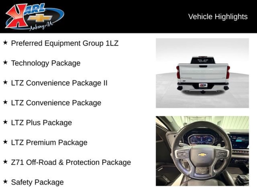 Whether you're tackling a tough job site, navigating rugged terrain, or simply enjoying the open road, this 2024 Chevrolet Silverado 1500 LTZ 4WD CREW CAB 147 LTZ is the perfect companion. Experience the perfect blend of power, capability, and refinement visit Karl Chevrolet of Ankeny today and let us put you behind the wheel.