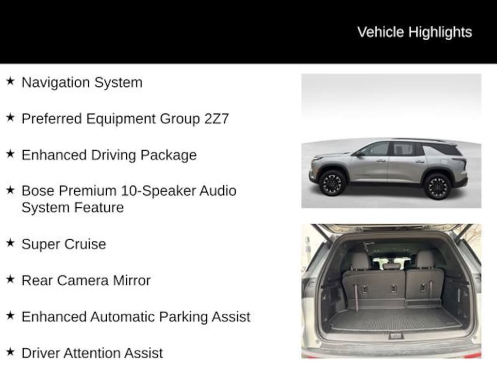 Bose Premium 10-Speaker Audio System Feature, Driver Attention Assist, Enhanced Automatic Parking Assist, Enhanced Driving Package, Navigation System, Preferred Equipment Group 2Z7, Rear Camera Mirror, Super Cruise.