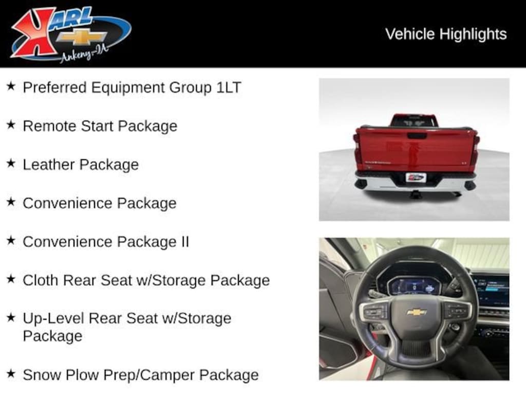 At Karl Chevrolet we want to help you find the best new or used car in Ankeny that suits your needs. Check out the 2025 Chevrolet Silverado 2500HD For Sale in Ankeny, IA. When you buy a new car at Karl Chevrolet you know you're finding a vehicle you can rely on. We have a great selection of Platinum Quality Pre-Owned Vehicles. We also pride ourselves in creating a friendly atmosphere and reliable new car dealership that you can trust. Call us with any questions about our 2025 Chevrolet Silverado 2500HD and our experts will be glad to help you! (515) 299-4300. *Equipment and options are generated by a 3rd party vendor, exact vehicle options may vary. Please see a salesperson for complete details and vehicle information.