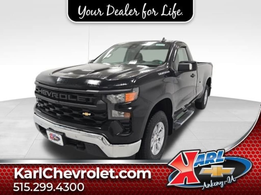 The 2025 Chevrolet Silverado 1500 WT is the perfect work truck for the modern job site. With its powerful EcoTec3 5.3L V8 engine, advanced 10-speed automatic transmission, and capable 4-wheel drive system, this Silverado is ready to take on any task you throw its way.Key features of this Silverado 1500 WT include: Chevytec Spray-On Black Bedliner Auto-Locking Rear Differential 17 Bright Silver Painted Aluminum Wheels WT Convenience Package WT Safety Package WT Value PackageThe WT Safety Package equips this Silverado with essential driver-assist technologies, including Front and Rear Park Assist, Lane Change Alert with Side Blind Zone Alert, Rear Cross Traffic Braking, and Rear Pedestrian Alert. The WT Value Package adds even more convenience with the WT Convenience Package and the Trailering Package, making this Silverado a true workhorse.Under the hood, the EcoTec3 5.3L V8 engine delivers 355 horsepower and 383 lb-ft of torque, providing the power you need for hauling heavy loads or towing your trailer. The 10-speed automatic transmission ensures smooth, efficient power delivery, while the 4-wheel drive system gives you the confidence to tackle any terrain.Inside, the Silverado 1500 WT offers a comfortable and functional cabin, with features like a 3.5 Monochromatic Display Driver Information Center, a Premium audio system, and a 120-volt power outlet to keep your tools and devices charged. The Rubberized-Vinyl Floor Covering and 40/20/40 Front Split Bench Seat with Vinyl Trim make this truck easy to clean and maintain, perfect for the demands of the job site.Whether you're hauling materials, towing a trailer, or just need a reliable work truck, the 2025 Chevrolet Silverado 1500 WT is the perfect choice. Experience the power, capability, and convenience of this impressive truck today.At Karl Chevrolet we want to help you find the best new or used car in Ankeny that suits your needs. When you buy a new car at Karl Chevrolet you know you're finding a vehicle you can rely on. We have a great selection of Platinum Quality Pre-Owned Vehicles. We also pride ourselves in creating a friendly atmosphere and a reliable Dealership that you can trust. Call us and our experts will be glad to help you! (515) 299-4300. *Equipment and options are generated by a 3rd party vendor, exact vehicle options may vary. Please see a salesperson for complete details and vehicle information. Price includes: $1500 - Chevrolet Bonus Cash. Exp. 03/02/2026 $3250 - Chevrolet Consumer Cash Program. Exp. 03/02/2026