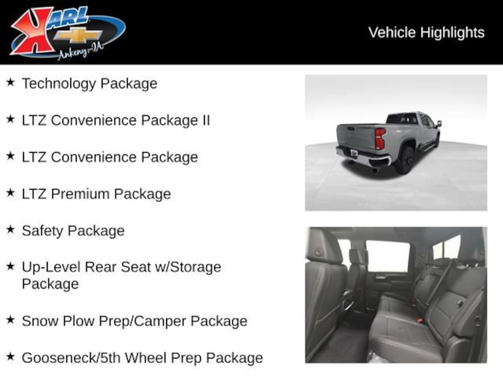 Factory MSRP: $83,979 $3,776 off MSRP! 10-Speed Automatic, 4WD, Black Leather, 10-Way Power Driver Seat Adjuster w/Lumbar, 10-Way Power Passenger Seat Adjuster w/Lumbar, 120-Volt Bed Mounted Power Outlet, 120-Volt Interior Power Outlet, 15 Diagonal Multicolor Head-Up Display, 2 Charge/Data USB Ports Inside Center Console, 220 Amp Alternator, 3 Years SiriusXM, ABS brakes, Adaptive Cruise Control, Air Conditioning, AM/FM radio: SiriusXM with 360L, Apple CarPlay/Android Auto, Auto-Dimming Inside Rear-View Mirror, Automatic temperature control, Bed View Camera w/2 Trailer Camera Provisions, Black Chevytec Spray-On Bedliner, Bluetooth® For Phone, BOSE Premium 7-Speaker Sound System, Brake assist, Chevrolet Connected Access Capable, Color-Keyed Carpeting Floor Covering, Deep-Tinted Glass, Delay-off headlights, Driver Memory, Driver vanity mirror, Dual front side impact airbags, Durabed Pickup Bed, Electric Rear-Window Defogger, Electronic Cruise Control w/Set & Resume Speed, Electronic Stability Control, Floor-Mounted Center Console, Front 40/20/40 Split-Bench Seats w/Lockable Storage, Front anti-roll bar, Front Bucket Seats, Front Center Armrest w/Storage, Front dual zone A/C, Front fog lights, Front Rain-Sensing Wipers, Front reading lights, Gooseneck/5th Wheel Prep Package, HD Rear Vision Camera, HD Surround Vision, Heated 2nd Row Outboard Seats, Heated Driver & Front Outboard Passenger Seating, Heated front seats, Heated Steering Wheel, Heated steering wheel, Hitch Guidance w/Hitch View, In-Vehicle Trailering App System, Keyless Open & Start, LED Cargo Area Lighting, LTZ Convenience Package, LTZ Convenience Package II, LTZ Premium Package, Memory seat, OnStar Services Capable, Passenger door bin, Perf Leather-Appointed Front Outboard Seat Trim, Power Front Windows w/Driver Express Up/Down, Power Front Windows w/Passenger Express Up/Down, Power passenger seat, Power Rear Windows w/Express Down, Power Sliding Rear Window w/Defogger, Power steering, Premium audio system: Chevrolet Infotainment 3 Premium, Push Button Start, Radio: Chevrolet Infotainment 3 Premium System, Rain sensing wipers, Rear Camera Mirror, Rear Cross Traffic Alert, Rear reading lights, Rear Rubberized Vinyl Floor Mats, Rear seat center armrest, Rear step bumper, Rear Wheelhouse Liners, Remote keyless entry, Remote Vehicle Starter System, Safety Alert Seat, Safety Package, Security system, SiriusXM w/360L Trial Subscription, Snow Plow Prep/Camper Package, Standard Tailgate, Suspension Package, Technology Package, Traction control, Trailer Camera Provisions, Trailer Side Blind Zone Alert, Turn signal indicator mirrors, Ultrasonic Front & Rear Park Assist, Universal Home Remote, Up-Level Rear Seat w/Storage Package, Ventilated Driver & Front Passenger Seats, Wheels: 18 Machined Alum w/Silver Painted Accents, Wheels: 20 High Gloss Black Aluminum (LPO), Wheels: 20 Transit Aluminum, Wi-Fi Hotspot Capable, Wireless Charging, Wireless Phone Projection.