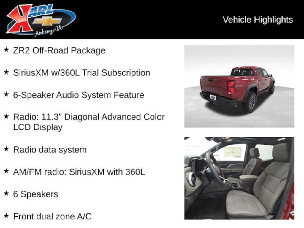 Radiant Red 2026 Chevrolet Colorado ZR2 4D Crew Cab 2.7L I4 Turbocharged DOHC 16V LEV3-ULEV50 310hp 8-Speed Automatic 4WD