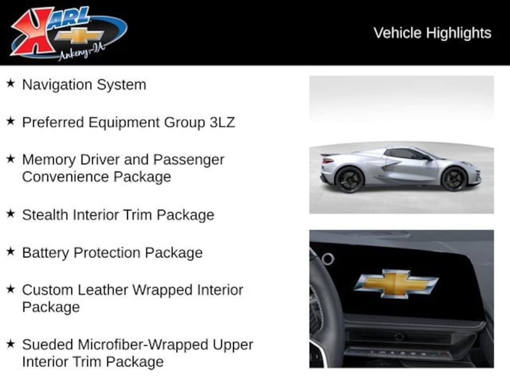 Beneath the sleek exterior lies a 6.2L V8 engine mated to an 8-Speed Dual Clutch transmission, delivering an exhilarating all-wheel-drive performance that will leave you breathless. With an impressive 16 city/24 highway MPGe, this Corvette seamlessly blends power and efficiency, making it the perfect companion for both the daily commute and the open road.