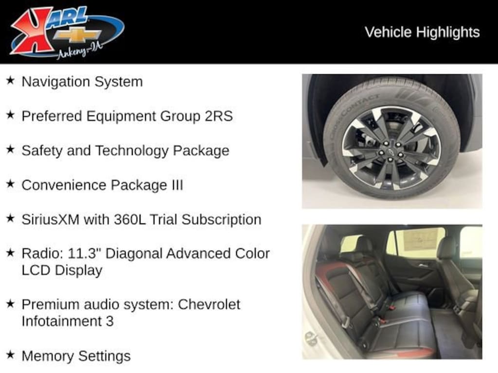 Elevate your driving experience with the 2026 Chevrolet Equinox RS In-Transit. Discover the perfect blend of style, technology, and capability that will make every journey exceptional. At Karl Chevrolet, we're dedicated to helping you find the perfect vehicle to suit your needs. Call us today at (515) 299-4300 to schedule a test drive and experience the Equinox RS for yourself.
