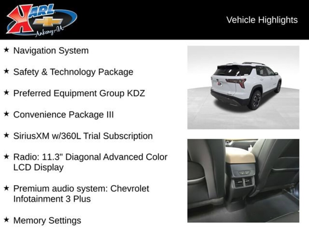 Factory MSRP: $40,285 24/29 City/Highway MPG AWD, 2-Way Power Driver Lumbar Control Seat Adjuster, Convenience Package III, Driver 8-Way Power Seat Adjuster, Front Bucket Seats, Front Center Armrest, Front Fog Lamps, Front Passenger 2-Way Power Lumbar Seat Adjuster, Front Passenger 4-Way Manual Seat Adjuster, Front Passenger 8-Way Power Seat Adjuster, HD Surround Vision, Heated Driver & Front Passenger Seats, Heated Rear Outboard Seating Positions, Memory Settings, Navigation System, Power Liftgate, Preferred Equipment Group KDZ, Premium audio system: Chevrolet Infotainment 3 Plus, Radio: 11.3 Diagonal Advanced Color LCD Display, Rear Pedestrian Alert, Safety & Technology Package, SiriusXM w/360L Trial Subscription, Split folding rear seat, Sueded Microfiber Seat Trim, Traffic Sign Recognition, Ventilated Driver Seat, Ventilated Front Passenger Seat, Wheels: 17 Dark Android Machined-Face Aluminum.