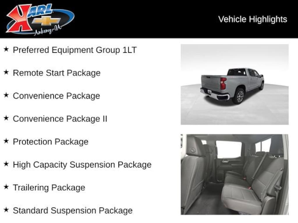 Factory MSRP: $60,405 $7,276 off MSRP! 10-Speed Automatic, 4WD, Black Cloth, 10-Way Power Driver Seat w/Lumbar, 12.3 Multicolor Reconfigurable Digital Display, 120-Volt Bed Mounted Power Outlet, 120-Volt Interior Power Outlet, 40/20/40 Front Split-Bench Seat, 6-Speaker Audio System, All-Star Edition, All-Weather Floor Liner (LPO), Apple CarPlay/Android Auto, Auto-Locking Rear Differential, Bluetooth® For Phone, Bumpers: chrome, Chevytec Spray-On Black Bedliner, Chrome Mirror Caps, Color-Keyed Carpeting Floor Covering, Convenience Package, Convenience Package II, Deep-Tinted Glass, Dual Rear USB Ports (Charge Only), Dual-Zone Automatic Climate Control, Electric Rear-Window Defogger, Electronic Cruise Control, EZ Lift Power Lock & Release Tailgate, Front Frame-Mounted Black Recovery Hooks, Front License Plate Kit, Front Rubberized Vinyl Floor Mats, HD Rear Vision Camera, Heated door mirrors, Heated Driver & Front Outboard Passenger Seats, Heated Power-Adjustable Outside Mirrors, Heated Steering Wheel, High Capacity Suspension Package, Hitch Guidance, Hitch Guidance w/Hitch View, In-Vehicle Trailering System App, Inside Rear-View Mirror w/Tilt, Integrated Trailer Brake Controller, IntelliBeam Automatic High Beam On/Off, Keyless Open & Start, LED Cargo Area Lighting, Manual Tilt/Telescoping Steering Column, OnStar Services Capable, Power Front Windows w/Driver Express Up/Down, Power Front Windows w/Passenger Express Down, Power Rear Windows w/Express Down, Power Sliding Rear Window w/Rear Defogger, Preferred Equipment Group 1LT, Premium audio system: Chevrolet Infotainment 3 Premium, Protection Package, Radio: Chevrolet Infotainment 3 Premium System, Rear 60/40 Folding Bench Seat (Folds Up), Rear Rubberized-Vinyl Floor Mats, Rear Wheelhouse Liners, Remote Start Package, Remote Vehicle Starter System, SiriusXM w/360L Trial Subscription, Split folding rear seat, Standard Suspension Package, Standard Tailgate, Steering Wheel Audio Controls, Teen Driver, Theft Deterrent System (Unauthorized Entry), Tire Pressure Monitoring System, Trailering Package, Universal Home Remote, Wheels: 20 x 9 Painted Aluminum, Wi-Fi Hot Spot Capable, Wrapped Steering Wheel.