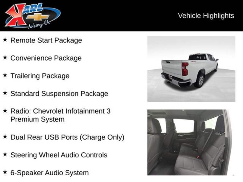 Factory MSRP: $58,590 $6,279 off MSRP! Priced below KBB Fair Purchase Price! 10-Speed Automatic, 4WD, Jet Blk Clth Cloth, 10-Way Power Driver Seat w/Lumbar, 12.3 Multicolor Reconfigurable Digital Display, 120-Volt Bed Mounted Power Outlet, 120-Volt Interior Power Outlet, 40/20/40 Front Split-Bench Seat, 6-Speaker Audio System, Air Conditioning, All-Star Edition, AM/FM radio: SiriusXM with 360L, Automatic temperature control, Brake assist, Cloth Seat Trim, Color-Keyed Carpeting Floor Covering, Convenience Package, Deep-Tinted Glass, Delay-off headlights, Dual front side impact airbags, Dual Rear USB Ports (Charge Only), Dual-Zone Automatic Climate Control, Electric Rear-Window Defogger, Electronic Cruise Control, Electronic Stability Control, Emergency communication system: OnStar, Forward Collision Alert, Front Center Armrest w/Storage, Front dual zone A/C, Front Pedestrian Braking, Front reading lights, Front Rubberized Vinyl Floor Mats, Heated Driver & Front Outboard Passenger Seats, Heated front seats, Heated Power-Adjustable Outside Mirrors, Heated Steering Wheel, Heated steering wheel, Hitch Guidance, IntelliBeam Automatic High Beam On/Off, Keyless Open & Start, LED Cargo Area Lighting, Manual Tilt/Telescoping Steering Column, Outside temperature display, Overhead console, Passenger door bin, Power Front Windows w/Driver Express Up/Down, Power windows, Radio data system, Radio: Chevrolet Infotainment 3 Premium System, Rear 60/40 Folding Bench Seat (Folds Up), Rear reading lights, Rear step bumper, Rear window defroster, Remote Start Package, Standard Suspension Package, Standard Tailgate, Steering Wheel Audio Controls, Tachometer, Teen Driver, Theft Deterrent System (Unauthorized Entry), Trailering Package, Trip computer, Wheels: 17 x 8 Bright Silver Painted Aluminum, Wi-Fi Hot Spot Capable, Wrapped Steering Wheel.