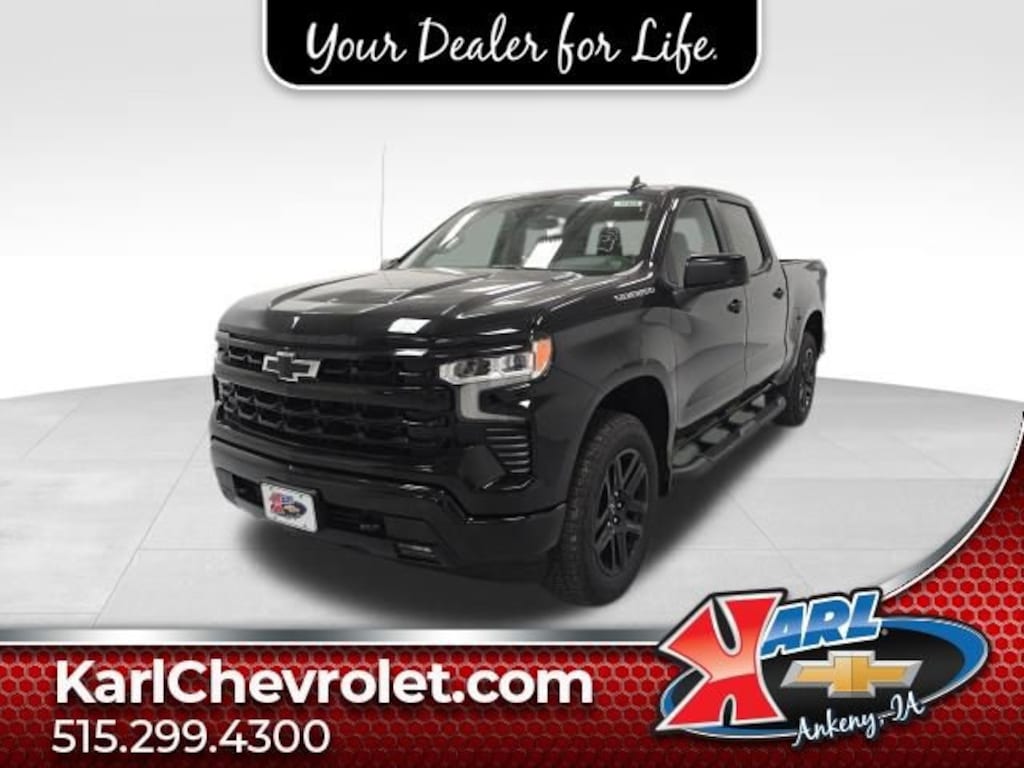 Certification Program Details: Karl Chevrolet of Ankeny, The Nation's #1 CarBravo Certified Dealer! Every CarBravo Certified vehicle includes: Comprehensive 126-Point Inspection Professionally inspected by factory-trained technicians to meet strict mechanical, safety, and cosmetic standards. 12-Month / 12,000-Mile Bumper-to-Bumper Limited Warranty Enjoy added peace of mind with extensive coverage from the day you drive off the lot. 24/7 Roadside Assistance & Courtesy Transportation Flat tire? Dead battery? Need a tow? You're covered anywhere, anytime throughout the warranty period. Vehicle History & Title Guarantee Clean title, completed safety recalls, and a full CARFAX® or AutoCheck® report provided for complete transparency. 10-Day / 500-Mile Exchange Promise If you don't absolutely love it, bring it back and exchange it no hassle, no stress. Experience peace of mind and premium protection exclusively from Karl Chevrolet of Ankeny, the Nation's #1 CarBravo Dealer!- Convenience Package- High Capacity Suspension Package- RST Select Package- Standard Suspension Package- Trailering PackageThis 2026 Chevrolet Silverado 1500 RST In-Transit is a powerful and capable full-size pickup that's ready to take on any task. Equipped with a turbocharged 2.7L I4 engine delivering 310 horsepower, this Silverado offers impressive performance and efficiency, with an EPA-estimated 17 MPG in the city and 21 MPG on the highway.Featuring a sleek black exterior, this Silverado RST boasts a commanding presence on the road. The bold styling is complemented by a host of premium features, including LED fog lamps, heated and power-adjustable mirrors, and a spray-on bedliner for added utility and protection.Inside, the cabin is packed with advanced technology and comfort-enhancing amenities. The Chevrolet Infotainment 3 Premium system provides seamless smartphone integration, while the 12.3-inch reconfigurable digital display keeps you informed and in control. Dual-zone automatic climate control, heated front seats, and a heated steering wheel ensure a pleasant driving experience, no matter the weather.For those who need to tow or haul, the Silverado RST is up to the task. The Trailering Package includes an integrated brake controller, hitch guidance, and a 120-volt power outlet in the bed, making it easy to connect and power your equipment. The available high-capacity suspension package further enhances the Silverado's capability, ensuring a smooth and stable ride even when fully loaded.Whether you're tackling a job site, navigating the city, or embarking on an adventure, this 2026 Chevrolet Silverado 1500 RST In-Transit is the perfect companion. Experience the perfect blend of power, technology, and utility all backed by the unparalleled peace of mind of the CarBravo Certified program.At Karl Chevrolet we want to help you find the best new or used car in Ankeny that suits your needs. When you buy a new car at Karl Chevrolet you know you're finding a vehicle you can rely on. We have a great selection of Platinum Quality Pre-Owned Vehicles. We also pride ourselves in creating a friendly atmosphere and a reliable Dealership that you can trust. Call us and our experts will be glad to help you! (515) 299-4300. *Equipment and options are generated by a 3rd party vendor, exact vehicle options may vary. Please see a salesperson for complete details and vehicle information. Price includes: $3000 - Chevrolet Consumer Cash Program. Exp. 03/31/2026