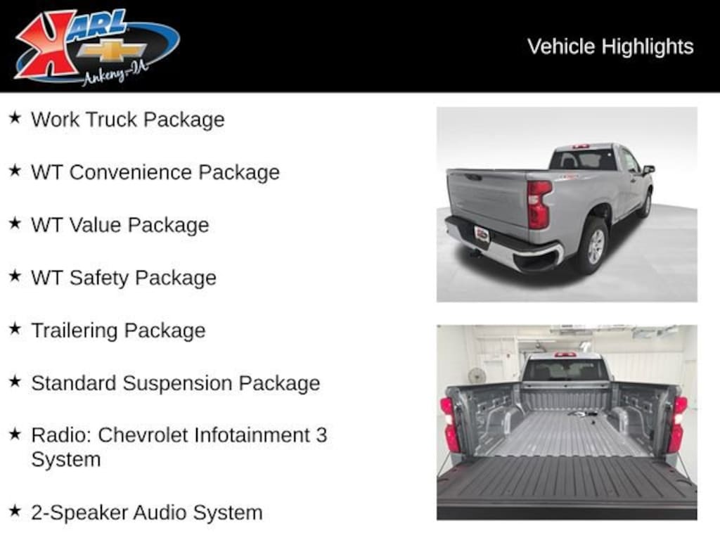Sterling 2026 Chevrolet Silverado 1500 WT 2D Standard Cab 2.7L I4 Turbocharged DOHC 16V LEV3-SULEV30 310hp 8-Speed Automatic 4WD Price includes: $1000 - GM Bonus Cash. Exp. 11/03/2025 $1750 - Chevrolet Consumer Cash Program. Exp. 11/03/2025