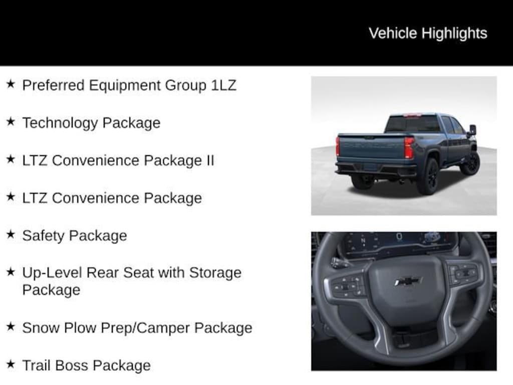Step inside the Silverado 2500HD LTZ and experience unparalleled comfort and convenience. The spacious cabin features premium leather-appointed seating, heated and ventilated front seats, and a heated steering wheel, ensuring you and your passengers enjoy every mile. The advanced Chevrolet Infotainment 3 Premium system with a 15-inch diagonal multicolor head-up display keeps you connected and entertained, while the Bed View Camera with Trailer Camera Provisions simplifies towing and hauling tasks.