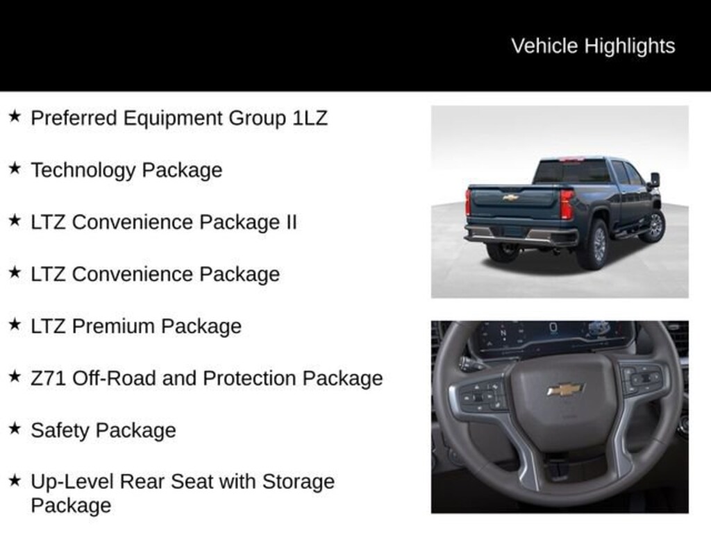 - LTZ Convenience Package, LTZ Convenience Package II, LTZ Premium Package, Preferred Equipment Group 1LZ, Safety Package, Snow Plow Prep/Camper Package, Suspension Package, Technology Package, Up-Level Rear Seat with Storage Package, Z71 Off-Road and Protection Package, Z71 Off-Road Package