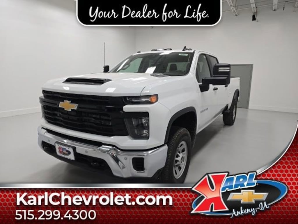 Certification Program Details: Karl Chevrolet of Ankeny, The Nation's #1 CarBravo Certified Dealer! Every CarBravo Certified vehicle includes: Comprehensive 126-Point Inspection Professionally inspected by factory-trained technicians to meet strict mechanical, safety, and cosmetic standards. 12-Month / 12,000-Mile Bumper-to-Bumper Limited Warranty Enjoy added peace of mind with extensive coverage from the day you drive off the lot. 24/7 Roadside Assistance & Courtesy Transportation Flat tire? Dead battery? Need a tow? You're covered anywhere, anytime throughout the warranty period. Vehicle History & Title Guarantee Clean title, completed safety recalls, and a full CARFAX® or AutoCheck® report provided for complete transparency. 10-Day / 500-Mile Exchange Promise If you don't absolutely love it, bring it back and exchange it no hassle, no stress. Experience peace of mind and premium protection exclusively from Karl Chevrolet of Ankeny, the Nation's #1 CarBravo Dealer! Gooseneck/5th Wheel Prep Package WT Convenience Package WT Safety Package Snow Plow Prep/Camper Package Duramax 6.6L V8 Turbodiesel 10-Speed Automatic Transmission 4WDThis 2026 Chevrolet Silverado 3500HD Work Truck is a powerhouse built to handle the toughest jobs. With its Duramax 6.6L V8 Turbodiesel engine and 10-speed automatic transmission, this truck delivers an impressive 470 horsepower and 975 lb-ft of torque, providing the muscle you need to conquer any task. The four-wheel-drive system ensures confident handling in any terrain, while the Gooseneck/5th Wheel Prep Package makes it easy to tow your heaviest loads.The Work Truck Convenience Package adds a host of practical features, including an EZ Lift power lock and release tailgate, tinted windows, a rear-window defogger, and power trailer mirrors with heated upper glass and manual extending/folding. The Work Truck Safety Package further enhances your confidence behind the wheel with Front and Rear Park Assist, Lane Change Alert with Side Blind Zone Alert, Rear Cross Traffic Alert, and more.Designed for the hardest-working professionals, this Silverado 3500HD is built to tackle any challenge. The sturdy Durabed pickup bed, with its Chevytec spray-on bedliner, provides ample space and protection for your cargo, while the LED cargo area lighting ensures you can see what you're loading, even in low-light conditions.Whether you're hauling heavy equipment, towing a trailer, or tackling winter weather, this Silverado 3500HD Work Truck is the reliable partner you need to get the job done right. Experience the power, capability, and convenience that make this truck a true workhorse. Visit Karl Chevrolet of Ankeny today and let us show you why this Silverado 3500HD is the perfect fit for your needs.At Karl Chevrolet we want to help you find the best new or used car in Ankeny that suits your needs. When you buy a new car at Karl Chevrolet you know you're finding a vehicle you can rely on. We have a great selection of Platinum Quality Pre-Owned Vehicles. We also pride ourselves in creating a friendly atmosphere and a reliable Dealership that you can trust. Call us and our experts will be glad to help you! (515) 299-4300. *Equipment and options are generated by a 3rd party vendor, exact vehicle options may vary. Please see a salesperson for complete details and vehicle information. Price includes: $1000 - Chevrolet Consumer Cash Program. Exp. 02/02/2026