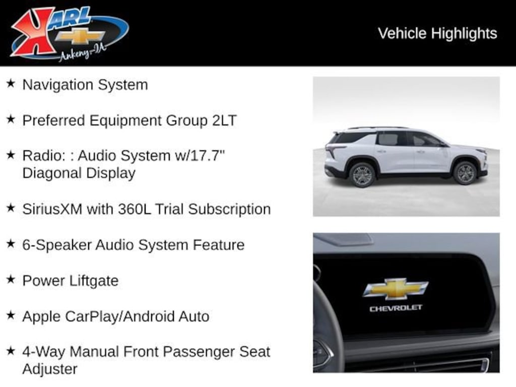 Boasting an impressive array of features, the Traverse LT is tailored to meet your every need. Key highlights include:
