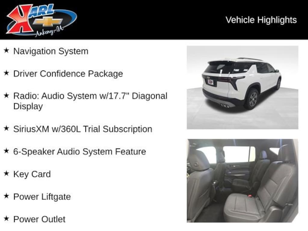 Factory MSRP: $45,920 AWD, 3rd row seats: split-bench, 4-Way Manual Front Passenger Seat Adjuster, 6-Speaker Audio System Feature, Apple CarPlay/Android Auto, Driver Confidence Package, Front Bucket Seats, Front Center Armrest, HD Surround Vision, Heated Driver & Front Passenger Seats, Key Card, Navigation System, Power Liftgate, Power Outlet, Radio: Audio System w/17.7 Diagonal Display, Rear Camera Mirror, Rear Pedestrian Alert, SiriusXM w/360L Trial Subscription, Traffic Sign Recognition, Wheels: 18 Grazen Metallic Machined-Face Aluminum.