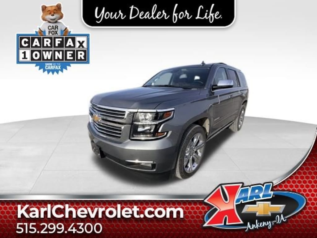 Recent Arrival! CARFAX One-Owner. Clean CARFAX. Satin Steel Metallic 2020 Chevrolet Tahoe Premier 4WD 4DR PREMIER EcoTec3 6.2L V8 4WD, Jet Black/Mahogany Leather. 14/22 City/Highway MPG 10-Speed Automatic with Overdrive 4WDAt Karl Chevrolet we want to help you find the best new or used car in Ankeny that suits your needs. Check out the 2020 Chevrolet Tahoe For Sale in Ankeny, IA. When you buy a new car at Karl Chevrolet you know you're finding a vehicle you can rely on. We have a great selection of Platinum Quality Pre-Owned Vehicles. We also pride ourselves in creating a friendly atmosphere and reliable new car dealership that you can trust. Call us with any questions about our 2020 Chevrolet Tahoe and our experts will be glad to help you! (515) 299-4300. *Equipment and options are generated by a 3rd party vendor, exact vehicle options may vary. Please see a salesperson for complete details and vehicle information.