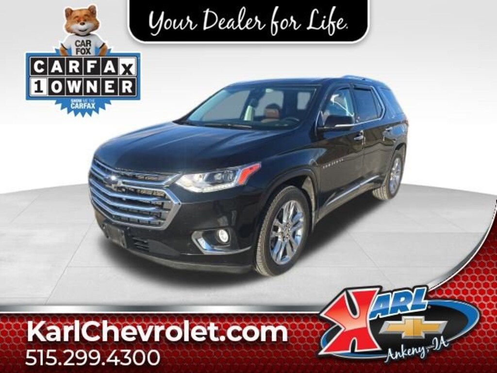 Recent Arrival! Clean CARFAX. Mosaic Black Metallic 2020 Chevrolet Traverse High Country 4DR SUV AWD 3.6L V6 SIDI VVT AWD. 17/25 City/Highway MPG 9-Speed Automatic AWDAt Karl Chevrolet we want to help you find the best new or used car in Ankeny that suits your needs. Check out the 2020 Chevrolet Traverse For Sale in Ankeny, IA. When you buy a new car at Karl Chevrolet you know you're finding a vehicle you can rely on. We have a great selection of Platinum Quality Pre-Owned Vehicles. We also pride ourselves in creating a friendly atmosphere and reliable new car dealership that you can trust. Call us with any questions about our 2020 Chevrolet Traverse and our experts will be glad to help you! (515) 299-4300. *Equipment and options are generated by a 3rd party vendor, exact vehicle options may vary. Please see a salesperson for complete details and vehicle information.