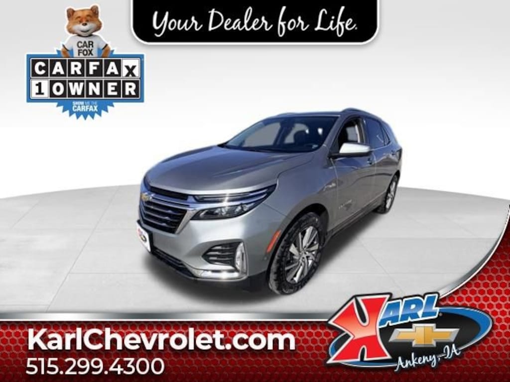 Recent Arrival! CARFAX One-Owner. Clean CARFAX. Sterling Gray Metallic 2023 Chevrolet Equinox Premier 4DR AWD PREMIER 1.5L DOHC AWD. 24/30 City/Highway MPG 6-Speed Automatic Electronic with Overdrive AWDAt Karl Chevrolet we want to help you find the best new or used car in Ankeny that suits your needs. Check out the 2023 Chevrolet Equinox For Sale in Ankeny, IA. When you buy a new car at Karl Chevrolet you know you're finding a vehicle you can rely on. We have a great selection of Platinum Quality Pre-Owned Vehicles. We also pride ourselves in creating a friendly atmosphere and reliable new car dealership that you can trust. Call us with any questions about our 2023 Chevrolet Equinox and our experts will be glad to help you! (515) 299-4300. *Equipment and options are generated by a 3rd party vendor, exact vehicle options may vary. Please see a salesperson for complete details and vehicle information.