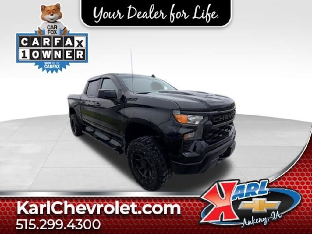 Certification Program Details: Karl Chevrolet of Ankeny, The Nation's #1 CarBravo Certified Dealer! Every CarBravo Certified vehicle includes: Comprehensive 126-Point Inspection Professionally inspected by factory-trained technicians to meet strict mechanical, safety, and cosmetic standards. 12-Month / 12,000-Mile Bumper-to-Bumper Limited Warranty Enjoy added peace of mind with extensive coverage from the day you drive off the lot. 24/7 Roadside Assistance & Courtesy Transportation Flat tire? Dead battery? Need a tow? You're covered anywhere, anytime throughout the warranty period. Vehicle History & Title Guarantee Clean title, completed safety recalls, and a full CARFAX® or AutoCheck® report provided for complete transparency. 10-Day / 500-Mile Exchange Promise If you don't absolutely love it, bring it back and exchange it no hassle, no stress. Experience peace of mind and premium protection exclusively from Karl Chevrolet of Ankeny, the Nation's #1 CarBravo Dealer!- Trailer Brake Controller, Integrated- 5.3L V8 EcoTec3 Engine- Wheels, 20 x 9 High Gloss Black Painted Aluminum- Midnight Edition- Custom Convenience Package- Suspension Package- Trailering PackageThis 2023 Chevrolet Silverado 1500 Custom Trail Boss 4WD Crew Cab is an impressive and versatile pickup that's ready to take on any adventure. Outfitted with the powerful and efficient EcoTec3 5.3L V8 engine, this Silverado delivers impressive performance and capability. The Custom Trail Boss package adds rugged off-road features like an integrated trailer brake controller, 20-inch black painted aluminum wheels, and the Midnight Edition styling package for a bold, aggressive look.Inside, you'll find a wealth of premium features and technology, including wireless phone projection, a 120-volt power outlet, and a 3.5-inch driver information center. The Silverado also offers advanced safety systems like forward collision alert, lane keep assist, and automatic emergency braking to give you added peace of mind on the road.As a CarBravo Certified vehicle, this Silverado has undergone a comprehensive 126-point inspection by our factory-trained technicians. It also comes with a 12-month/12,000-mile bumper-to-bumper limited warranty, 24/7 roadside assistance, and a vehicle history and title guarantee. You can drive with confidence knowing this Silverado has been meticulously evaluated and meets our high standards for quality and reliability.Whether you're tackling tough jobs, exploring the great outdoors, or just need a capable and well-equipped daily driver, this 2023 Chevrolet Silverado 1500 Custom Trail Boss 4WD Crew Cab is an excellent choice. Experience the power, capability, and premium features that make this Silverado stand out. Schedule a test drive today and let our team at Karl Chevrolet of Ankeny show you why we're the Nation's #1 CarBravo Certified Dealer.At Karl Chevrolet we want to help you find the best new or used car in Ankeny that suits your needs. When you buy a new car at Karl Chevrolet you know you're finding a vehicle you can rely on. We have a great selection of Platinum Quality Pre-Owned Vehicles. We also pride ourselves in creating a friendly atmosphere and a reliable Dealership that you can trust. Call us and our experts will be glad to help you! (515) 299-4300. *Equipment and options are generated by a 3rd party vendor, exact vehicle options may vary. Please see a salesperson for complete details and vehicle information.