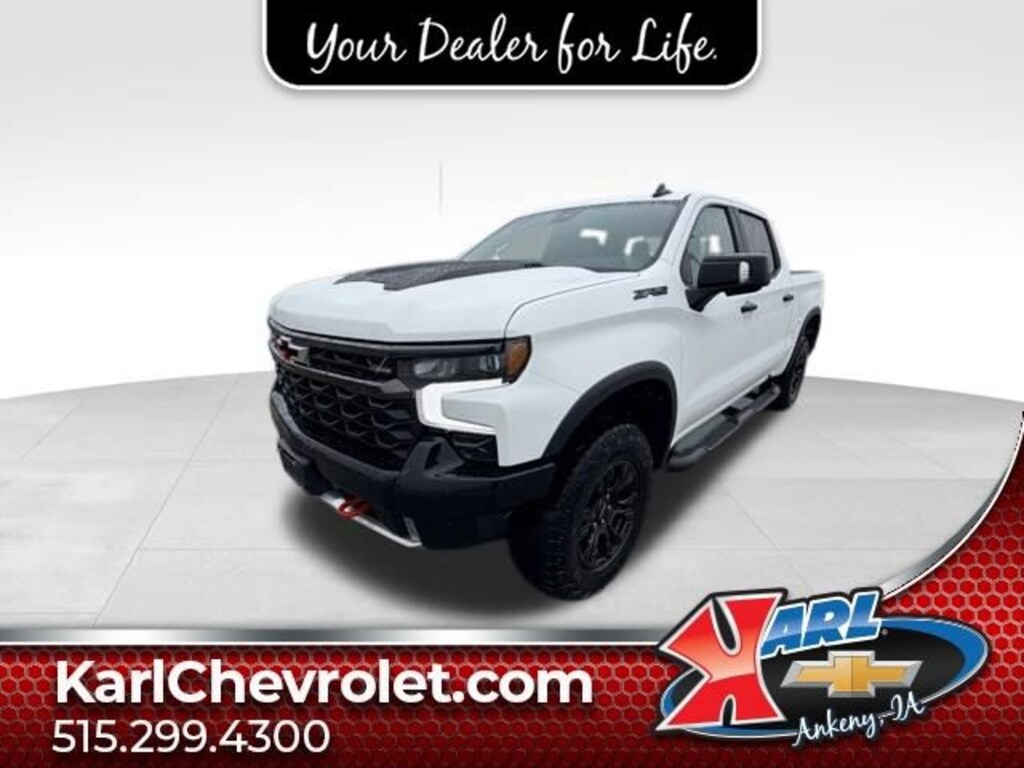 Certification Program Details: Karl Chevrolet of Ankeny, The Nation's #1 CarBravo Certified Dealer! Every CarBravo Certified vehicle includes: Comprehensive 126-Point Inspection Professionally inspected by factory-trained technicians to meet strict mechanical, safety, and cosmetic standards. 12-Month / 12,000-Mile Bumper-to-Bumper Limited Warranty Enjoy added peace of mind with extensive coverage from the day you drive off the lot. 24/7 Roadside Assistance & Courtesy Transportation Flat tire? Dead battery? Need a tow? You're covered anywhere, anytime throughout the warranty period. Vehicle History & Title Guarantee Clean title, completed safety recalls, and a full CARFAX® or AutoCheck® report provided for complete transparency. 10-Day / 500-Mile Exchange Promise If you don't absolutely love it, bring it back and exchange it no hassle, no stress. Experience peace of mind and premium protection exclusively from Karl Chevrolet of Ankeny, the Nation's #1 CarBravo Dealer!- Dark Essentials Package (LPO)- Preferred Equipment Group 3LT- Technology Package- Trailering Package- Up-Level Rear Seat w/Storage Package- ZR2 Suspension Package- 2 USB Data Ports- Dual Rear USB Ports (Charge Only)- Premium Bose 7-Speaker Sound System- SiriusXM w/360L- Steering Wheel Audio Controls- Wireless Phone ProjectionThis 2023 Chevrolet Silverado 1500 ZR2 4WD CREW CAB 147 ZR is a powerhouse on and off the road. With its impressive EcoTec3 6.2L V8 engine and 10-speed automatic transmission, you'll have the power and capability to conquer any terrain. The ZR2 suspension package provides exceptional off-road performance, while the advanced technology features, including the 15-inch head-up display and Rear Camera Mirror, keep you connected and informed on every journey.The Silverado ZR2 also boasts a wealth of premium amenities, from the luxurious leather-appointed seats with heating and ventilation to the premium Bose audio system and wireless phone projection. And with the Dark Essentials Package, this truck has a bold, aggressive appearance that's sure to turn heads.Whether you're tackling the toughest trails or navigating the daily commute, this Silverado ZR2 is the perfect companion. Experience the ultimate in capability, comfort, and style with this exceptional vehicle.This Silverado 1500 ZR2 has been meticulously inspected and certified through the Karl Chevrolet CarBravo program, ensuring you can drive with confidence. With a comprehensive 126-point inspection, a 12-month/12,000-mile limited warranty, and 24/7 roadside assistance, you can trust that this vehicle is ready to provide you with years of reliable performance.At Karl Chevrolet we want to help you find the best new or used car in Ankeny that suits your needs. When you buy a new car at Karl Chevrolet you know you're finding a vehicle you can rely on. We have a great selection of Platinum Quality Pre-Owned Vehicles. We also pride ourselves in creating a friendly atmosphere and a reliable Dealership that you can trust. Call us and our experts will be glad to help you! (515) 299-4300. *Equipment and options are generated by a 3rd party vendor, exact vehicle options may vary. Please see a salesperson for complete details and vehicle information.