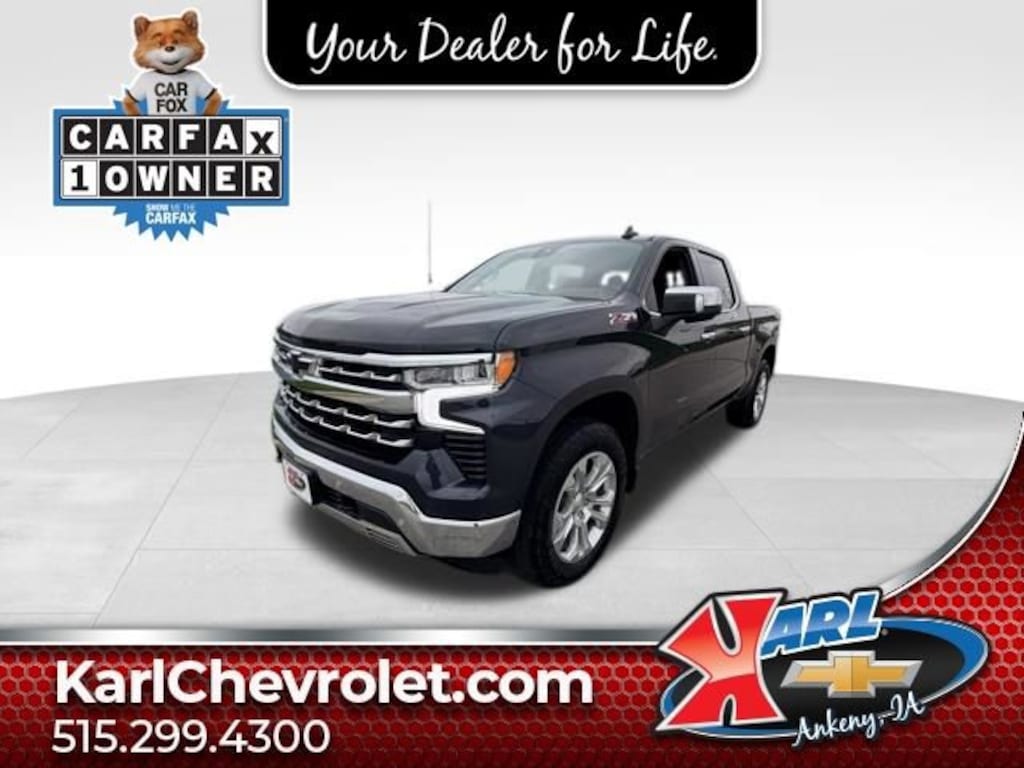Recent Arrival! CARFAX One-Owner. Ash 2023 Chevrolet Silverado 1500 LTZ 4WD CREW 147 EcoTec3 5.3L V8 10-Speed Automatic, 4WD, Black Leather. 10-Speed Automatic 4WDAt Karl Chevrolet we want to help you find the best new or used car in Ankeny that suits your needs. Check out the 2023 Chevrolet Silverado 1500 For Sale in Ankeny, IA. When you buy a new car at Karl Chevrolet you know you're finding a vehicle you can rely on. We have a great selection of Platinum Quality Pre-Owned Vehicles. We also pride ourselves in creating a friendly atmosphere and reliable new car dealership that you can trust. Call us with any questions about our 2023 Chevrolet Silverado 1500 and our experts will be glad to help you! (515) 299-4300. *Equipment and options are generated by a 3rd party vendor, exact vehicle options may vary. Please see a salesperson for complete details and vehicle information.