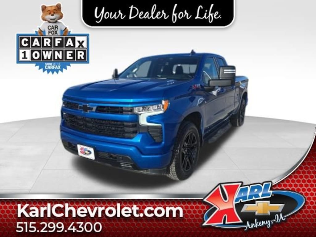 Recent Arrival! Clean CARFAX. Glacier Blue Metallic 2023 Chevrolet Silverado 1500 RST 4WD DOUBLE 147 3.0L I6 10-Speed Automatic, 4WD, Black Leather. 22/27 City/Highway MPG 10-Speed Automatic 4WDAt Karl Chevrolet we want to help you find the best new or used car in Ankeny that suits your needs. Check out the 2023 Chevrolet Silverado 1500 For Sale in Ankeny, IA. When you buy a new car at Karl Chevrolet you know you're finding a vehicle you can rely on. We have a great selection of Platinum Quality Pre-Owned Vehicles. We also pride ourselves in creating a friendly atmosphere and reliable new car dealership that you can trust. Call us with any questions about our 2023 Chevrolet Silverado 1500 and our experts will be glad to help you! (515) 299-4300. *Equipment and options are generated by a 3rd party vendor, exact vehicle options may vary. Please see a salesperson for complete details and vehicle information.