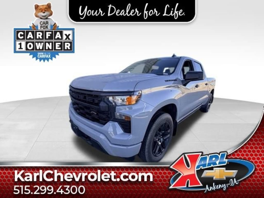 Recent Arrival! CARFAX One-Owner. Clean CARFAX. Slate Gray Metallic 2024 Chevrolet Silverado 1500 Custom 4WD CREW CAB 147 CU 2.7L I4 Turbocharged DOHC 16V LEV3-SULEV30 310hp 8-Speed Automatic, 4WD, Black Cloth. 18/21 City/Highway MPG 8-Speed Automatic 4WDAt Karl Chevrolet we want to help you find the best new or used car in Ankeny that suits your needs. Check out the 2024 Chevrolet Silverado 1500 For Sale in Ankeny, IA. When you buy a new car at Karl Chevrolet you know you're finding a vehicle you can rely on. We have a great selection of Platinum Quality Pre-Owned Vehicles. We also pride ourselves in creating a friendly atmosphere and reliable new car dealership that you can trust. Call us with any questions about our 2024 Chevrolet Silverado 1500 and our experts will be glad to help you! (515) 299-4300. *Equipment and options are generated by a 3rd party vendor, exact vehicle options may vary. Please see a salesperson for complete details and vehicle information.