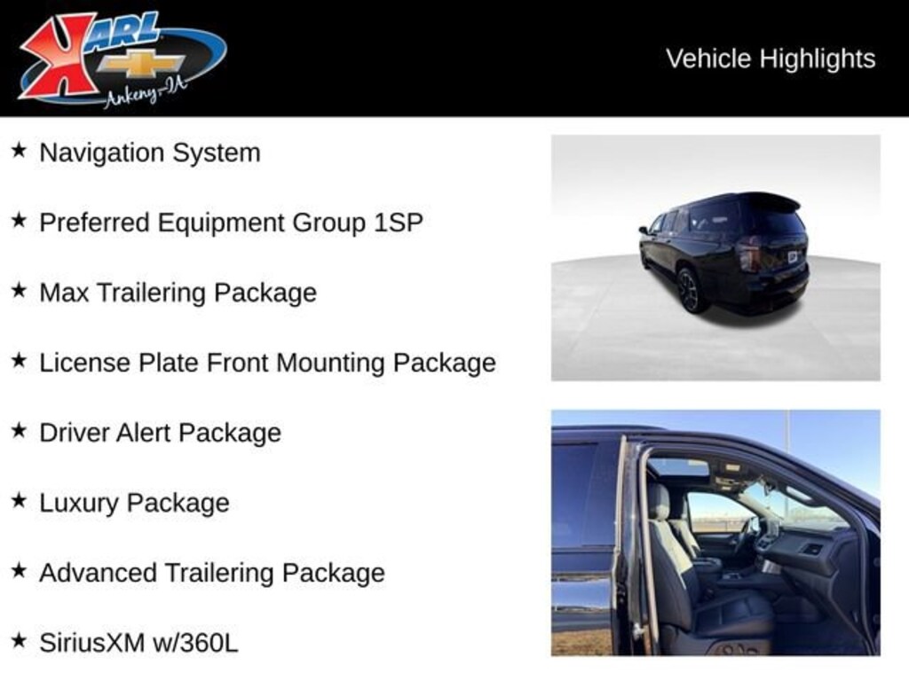 At Karl Chevrolet we want to help you find the best new or used car in Ankeny that suits your needs. When you buy a new car at Karl Chevrolet you know you're finding a vehicle you can rely on. We have a great selection of Platinum Quality Pre-Owned Vehicles. We also pride ourselves in creating a friendly atmosphere and a reliable Dealership that you can trust. Call us and our experts will be glad to help you! (515) 299-4300. *Equipment and options are generated by a 3rd party vendor, exact vehicle options may vary. Please see a salesperson for complete details and vehicle information.