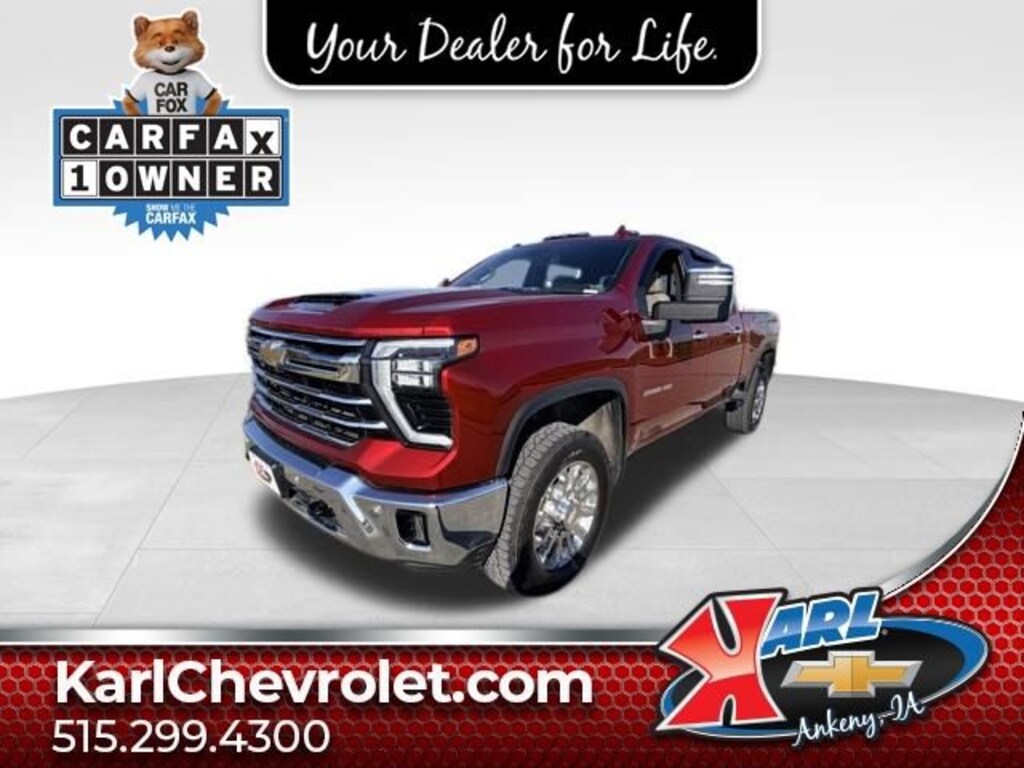 Recent Arrival! CARFAX One-Owner. Clean CARFAX. Radiant Red 2025 Chevrolet Silverado 2500HD LTZ 4WD CREW CAB 159 LTZ Duramax 6.6L V8 Turbodiesel 10-Speed Automatic, 4WD, Gideon/Very Dark Atmosphere Leather. 10-Speed Automatic 4WDAt Karl Chevrolet we want to help you find the best new or used car in Ankeny that suits your needs. Check out the 2025 Chevrolet Silverado 2500HD For Sale in Ankeny, IA. When you buy a new car at Karl Chevrolet you know you're finding a vehicle you can rely on. We have a great selection of Platinum Quality Pre-Owned Vehicles. We also pride ourselves in creating a friendly atmosphere and reliable new car dealership that you can trust. Call us with any questions about our 2025 Chevrolet Silverado 2500HD and our experts will be glad to help you! (515) 299-4300. *Equipment and options are generated by a 3rd party vendor, exact vehicle options may vary. Please see a salesperson for complete details and vehicle information.