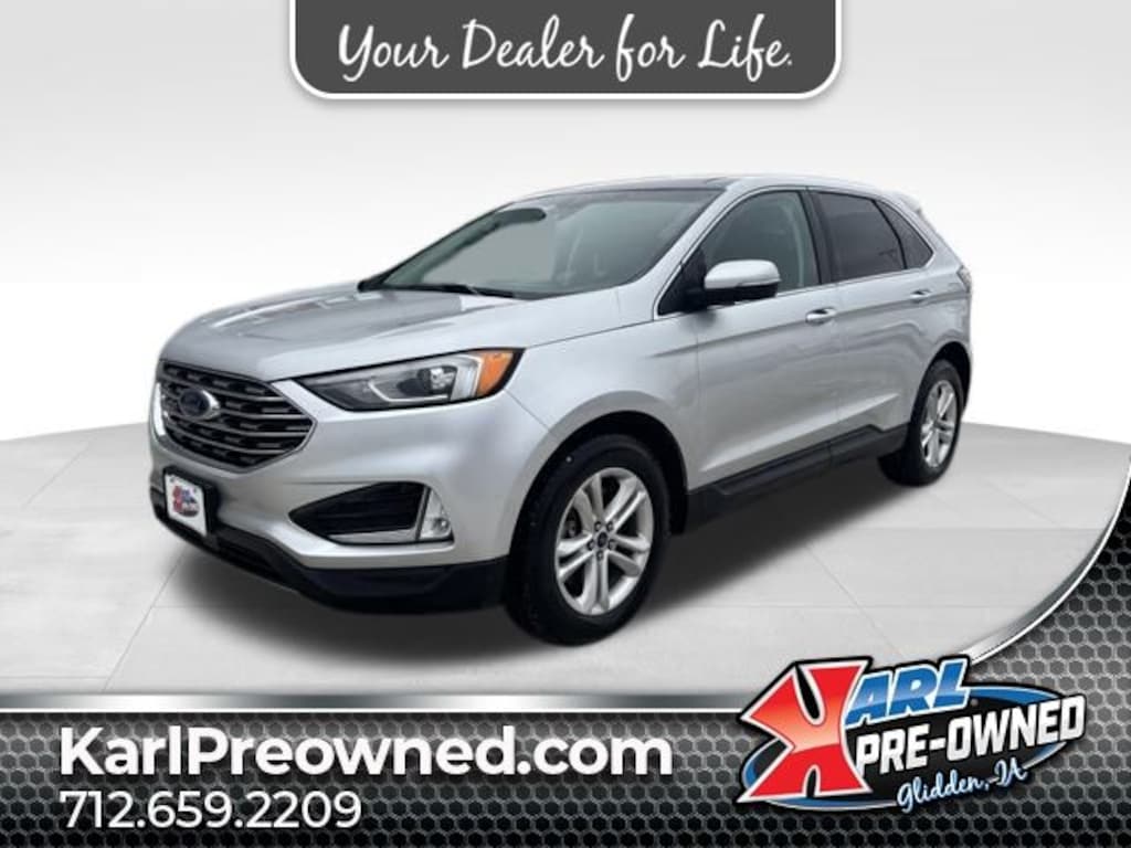 This 2019 Ford Edge SEL AWD offers a refined balance of performance, comfort, and advanced technology in a versatile midsize SUV. Powered by a twin-scroll 2.0L EcoBoost turbocharged engine paired with an 8-speed automatic transmission, this Edge delivers confident acceleration along with all-wheel drive capability for added traction in changing road conditions. Finished in Ingot Silver Metallic with an Ebony ActiveX seating interior, it provides seating for five and a thoughtfully designed cabin focused on comfort and convenience. The SEL trim includes heated front seats, dual-zone automatic climate control, a power driver seat with lumbar support, leather-wrapped steering wheel, and a panoramic Vista Roof that fills the interior with natural light. Technology highlights include SYNC 3 with an 8-inch touchscreen, Apple CarPlay and Android Auto compatibility, voice-activated navigation, wireless charging, FordPass Connect with 4G LTE Wi-Fi hotspot capability, and a hands-free power liftgate. Safety is a strong focus with Ford Co-Pilot360 Assist+, featuring adaptive cruise control with stop-and-go, evasive steering assist, lane-keeping system, blind spot monitoring, rear view camera, and pre-collision assist with automatic emergency braking. With its smooth ride, modern features, and advanced driver-assist technologies, this 2019 Ford Edge SEL AWD is an excellent choice for families and commuters seeking comfort, capability, and efficiency in a midsize SUV.