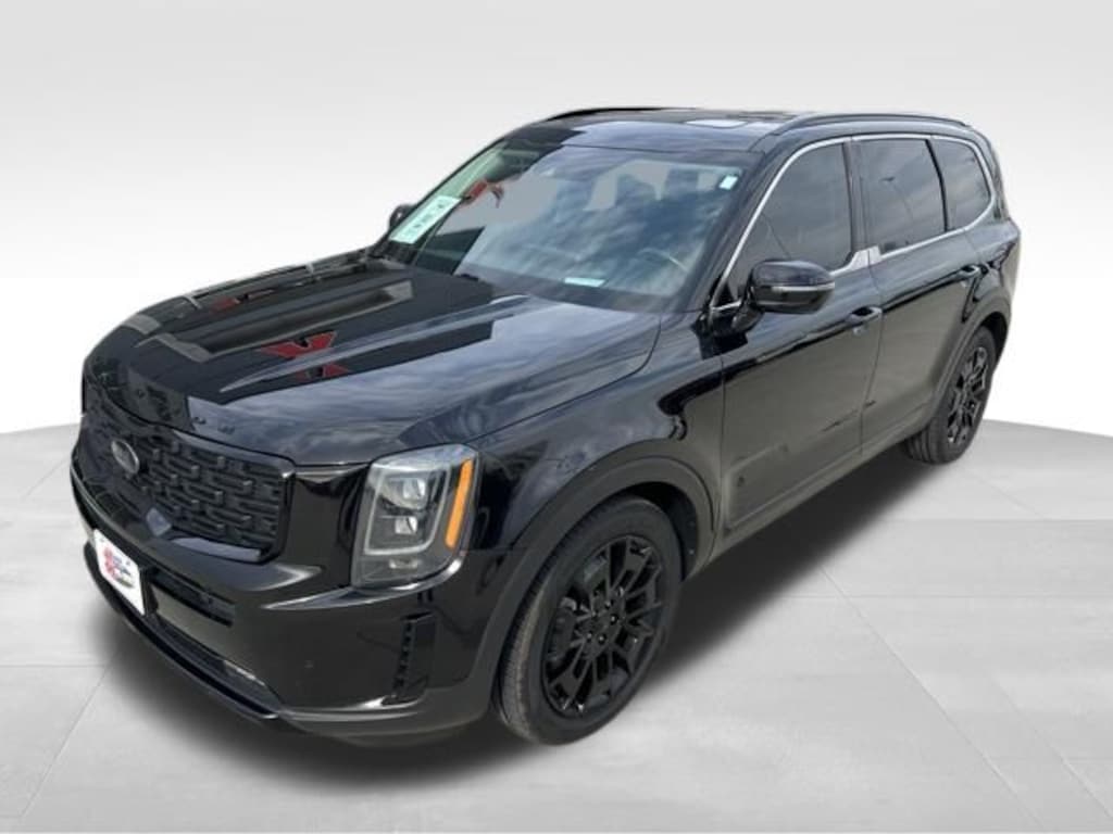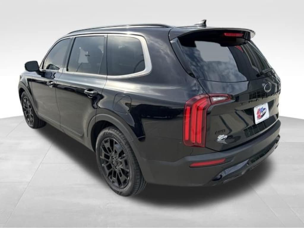 The 2021 Kia Telluride SX V6 AWD features a striking Black Copper exterior with a Black interior, paired with a 3.8L Gas Direct Injection V6 engine and an 8-speed automatic transmission. This model comes with Active On-Demand All-Wheel Drive and Drive Mode Select, providing confident handling in all conditions. Inside, the Telluride offers leather-trimmed heated and ventilated front seats, with the SX Prestige Package adding Nappa leather and premium interior upgrades, along with second-row captains chairs that are heated and ventilated. Comfort and convenience are enhanced with a Smart Key system with push-button start, remote engine start, UVO Link with a one-year trial, navigation with a 10.25-inch touchscreen, Android Auto and Apple CarPlay, SIRIUSXM with a three-month free trial, tri-zone automatic climate control, a heated leather-wrapped steering wheel, and wireless phone charging.