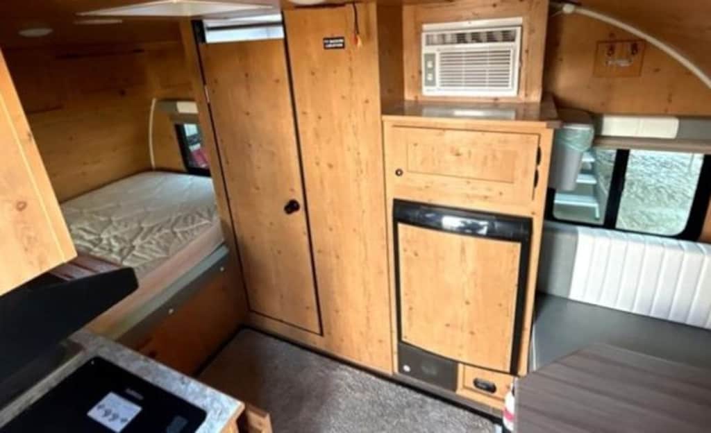 Despite its small footprint, the Sunray 149 is impressively equipped with a cozy sleeping area, functional kitchenette, and smart storage throughout. Inside, youâll find comfortable sleeping space for two to keep things comfortable wherever you travel.